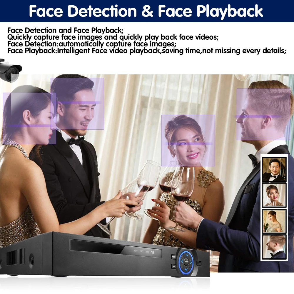 H.265 8CH CCTV System AHD DVR kit Face Recorder Home Security Waterproof Outdoor Night Vision Camer