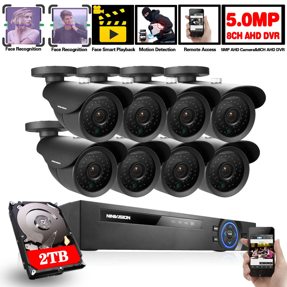 HIGH QUALITY H.265 8CH CCTV System AHD DVR kit Face Recorder Home Security Waterproof Outdoor Night Vision Camer